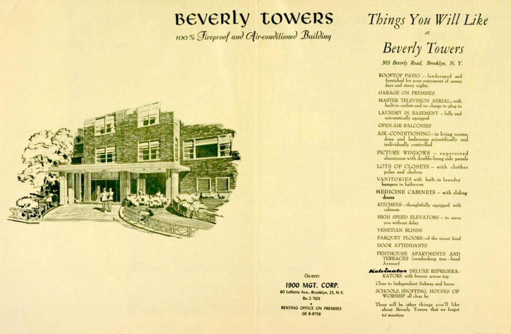 303 Beverley Road, known then as The Beverley Imperial, was built in 1956. Originally built as a rental only building, like many other buildings in Brooklyn it was converted in to a cooperative in the 1980s. At the time of construction, 303 Beverley was one of the tallest residential buildings in Brooklyn.